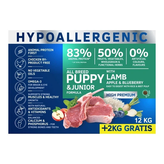 •Hipoallergén receptúra érzékeny emésztésű kölyök és fiatal kutyáknak