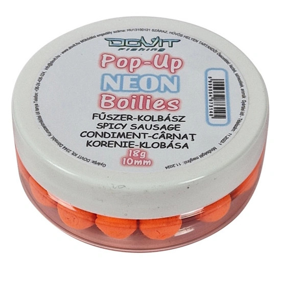 Dovit Pop-Up Neon Boilie 10mm - Fűszeres Kolbász 18g