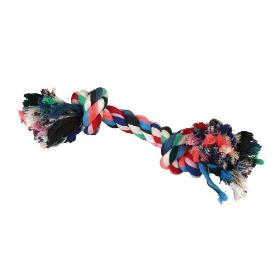 Pamutkeverékből készüt színes rágókötél csomókkal kutyáknak.