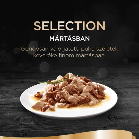 Csirkével és marhával: hús és állati származékok (44%, természetes* 94%; ebből csirke 4% és marha 4%), növényi eredetű származékok, ásványi anyagok, különféle cukrok,