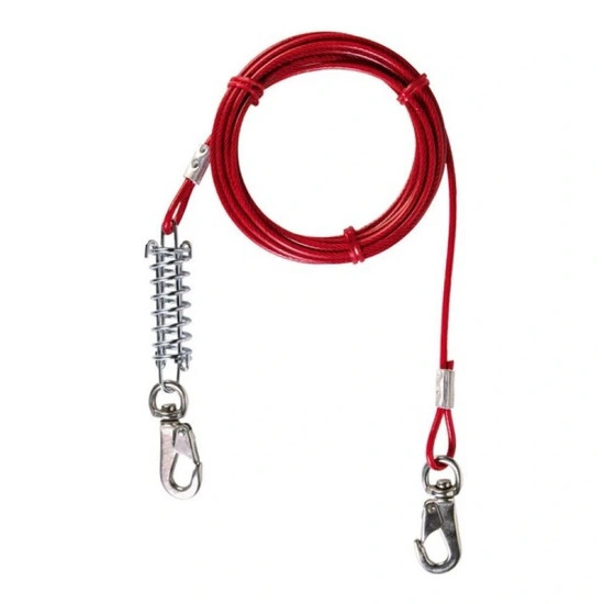 A terméket nem folyamatos használatra szánták. Óvatosan ismertesse meg a terméket a kutyájával és szánjon elegendő időt a folyamatra. Győződjön meg róla, hogy a termék biztonságosan van rögzítve és távolítson el minden akadályt abból a sugárból, amelyben kedvence mozoghat. Kérjük az állatjóléti törvényt tartsa be. Az acél sodronyon található műanyag bevonat megakadályozza a korróziót és megkönnyíti a tisztítást. Az ütéselnyelő rugó védi a kutyát a sérülésektől. Az acél sodrony hossza 8m.