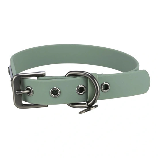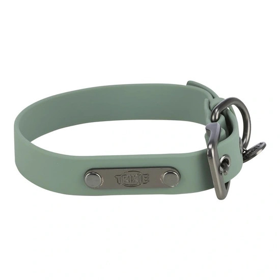 A hevederszalagból készült PVC bevonatú Trixie Citystyle nyakörv vízlepergető anyagának köszönhetően könnyen letörölhető. Ez az elegáns megjelenésű nyakörv övcsattal könnyen feladható és levehető. Egyedi megjelenését a Trixie feliratos kiegészítő biléka és címke fokozzák. Méret: L-XL Nyakkörméret: 50-57cm Nyakörv szélessége: 30mm Nyakörv színe: zsálya
