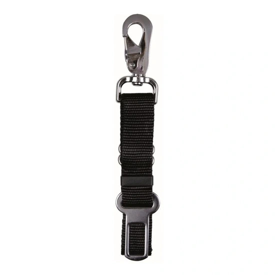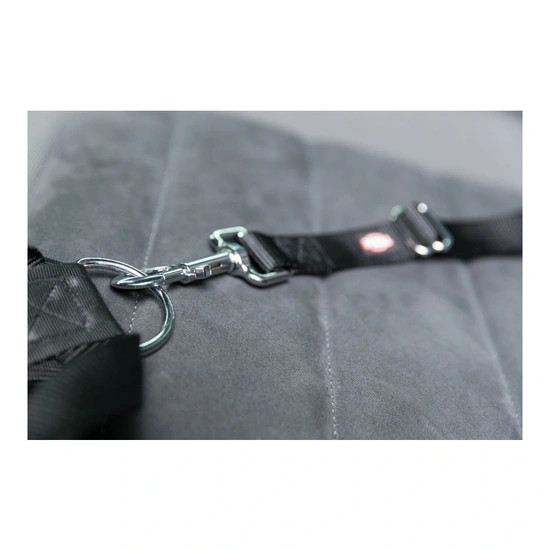 Biztonsági öv, mely megakadályozza az állat mozgását a járműben. Teljesen állítható, de nem alkalmas minden autótípushoz. Anyaga: nylon és fém. Színe: fekete.