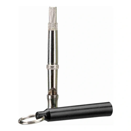 A magas frekvenciájú síppal a hangmagasság egyénileg állítható. A műanyag kupak (frekvencia védelem) alatti állítócsavar segítségével kiválaszthatja a kutyájának megfelelő pályát. A magasabb hangok közeli, az alacsonyabb hangok nagyobb távolságra szólnak. A hangmagasság az állítócsavar alatti anyával rögzíthető.