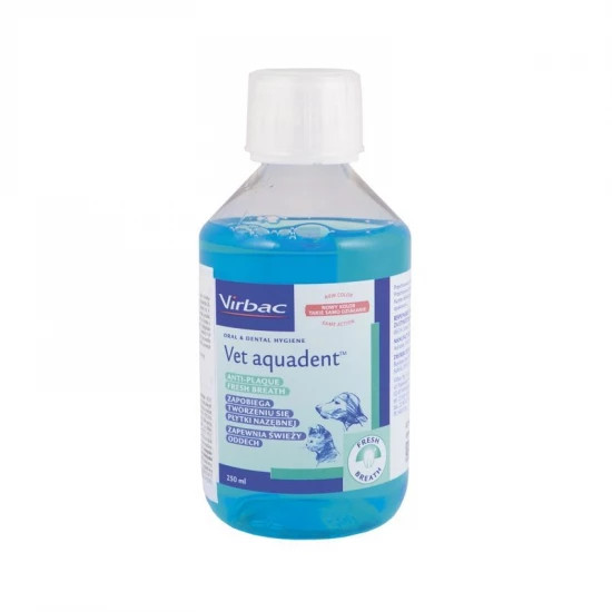 A Vet Aquadent ízesített szájhigiéniai oldat, amely megszünteti a szájszagot, és lassítja a fogkő kialakulását.