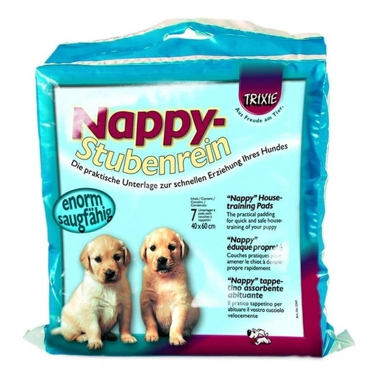 Használati utasítás: Helyezze a pelenkát a kutyus fekhelyéhez közel. Tegye a kutyust a pelenkára közvetlenül az etetés és itatás után addig amíg el nem végzi a dolgát. Minden használatkor helyezze közelebb a pelenkát az ajtóhoz. Végül helyezze a pelenkát az ajtón kívülre. Fontos hogy megdicsérje a kölyökkutyát minden helyes használat után.