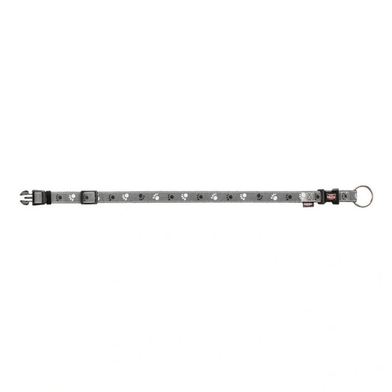 A Trixie ezüst színű, fényvisszaverő nyakörvével biztonságosabb a sötétben, vagy rossz látási viszonyok között történő kutyasétáltatás. Az állítható nylon nyakörvön fényvisszaverő tappancs lenyomatok biztosítják a jobb láthatóságot, mivel felülete visszaveri az autófényszórók, vagy az utcai lámpákról a felületére vetődő fényét. Állítható méret: 30-45cm/15mm, Szín: szürke-fekete